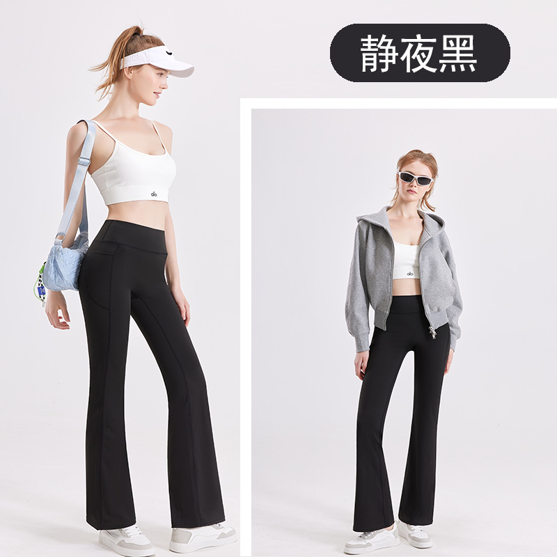 Women's summer thin high waist slimming yoga pants with flared side pockets for exercise and fitness without embarrassing lines and no falling crotch Barbie pants
