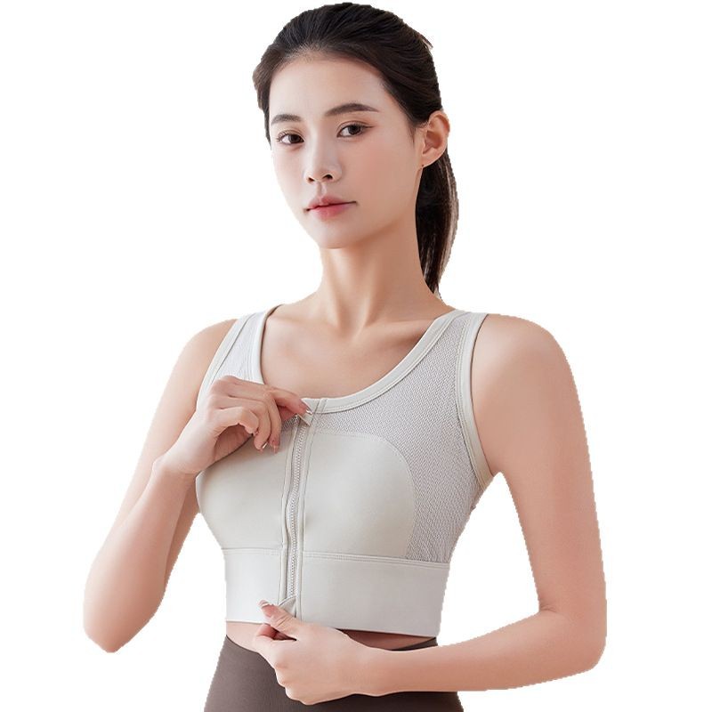 Mesh front zipper high-strength shockproof sports bra integrated chest pad seamless yoga vest push-up bra