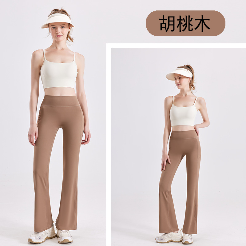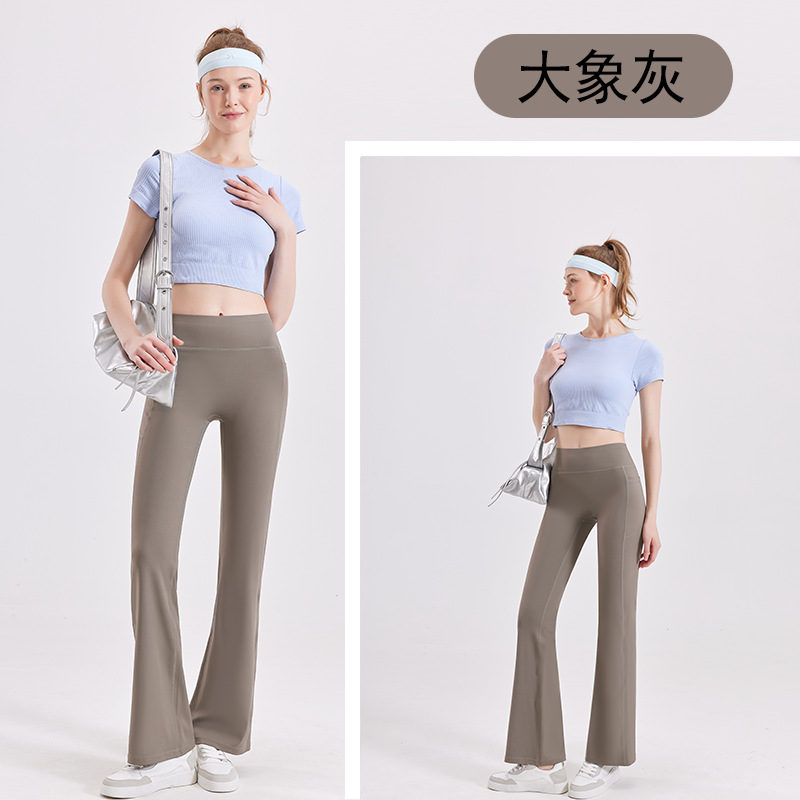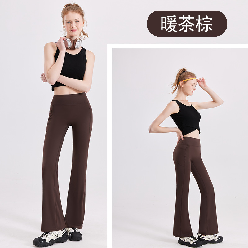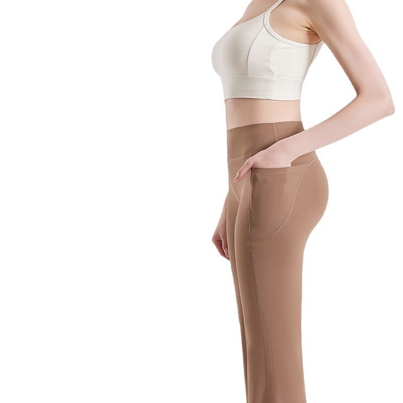 Women's summer thin high waist slimming yoga pants with flared side pockets for exercise and fitness without embarrassing lines and no falling crotch Barbie pants